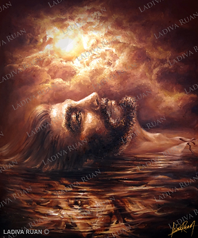 Jesus at the time of his crucifixion. In my painting I imagined a ray of light would come from the dark sky and illuminate the side of his face.